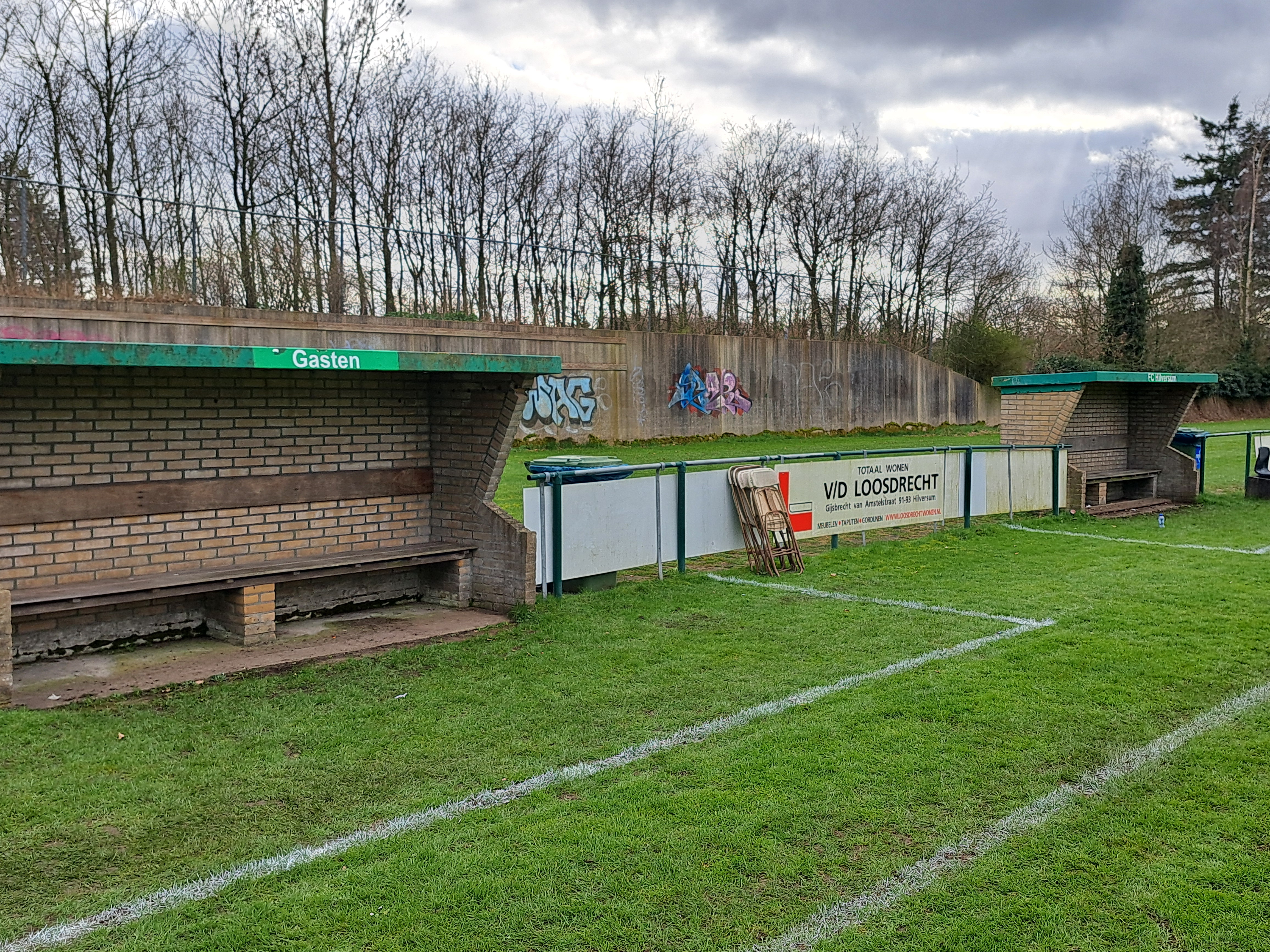 Over de wedstrijd zelf kunnen we mooi kort zijn, dat was een hele slechte voorstelling. Het veld was hobbeling waar beide ploegen last van hadden. Af en toe een paar kansjes aan beide kanten maar het leek uiteindelijk op een bloedeloze 0-0 uit te lopen. Echter op het laatst rook FC Hilversum toch kansen op een driepunter en nadat eerst een doelpunt werd afgekeurd wegens buitenspel was het in minuut 87 toch raak voor de thuisploeg. Lang kon hier niet van worden nagenoten want in de 88e minuut lag hij aan de andere kant in het mandje en was de stand alweer 1-1. Toen Valleivogels in de 89e minuut mocht aanleggen begonnen de gedachtes toch te worden het zal toch niet, maar het zou toch wel, de vrije trap belande via een stuiter in het doel en opeens was 1-2. Gescoord werd er hierna niet meer waardoor de 3 punten mee konden naar Scherpenzeel. Verdiend? Dat zeker niet, maar als rood-witte hadden we daar maar even geen boodschap aan. Voor FC Hilversum zijn de druiven erg zuur, want handhaving lijkt op deze manier al bijna een mission impossible. Hierbij nog een aantal foto's van het mooi gelegen Sportpark Crailoo: